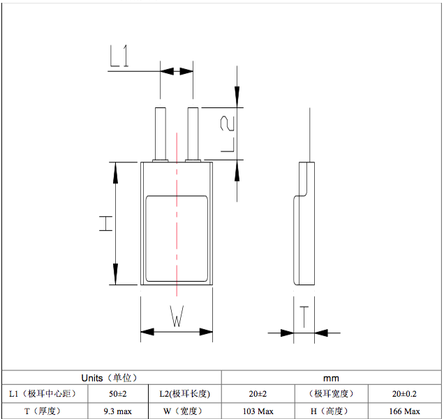 material : Specification for 3.0V CR123A 1300mAh Li/MnO2 Primary Lithium Battery